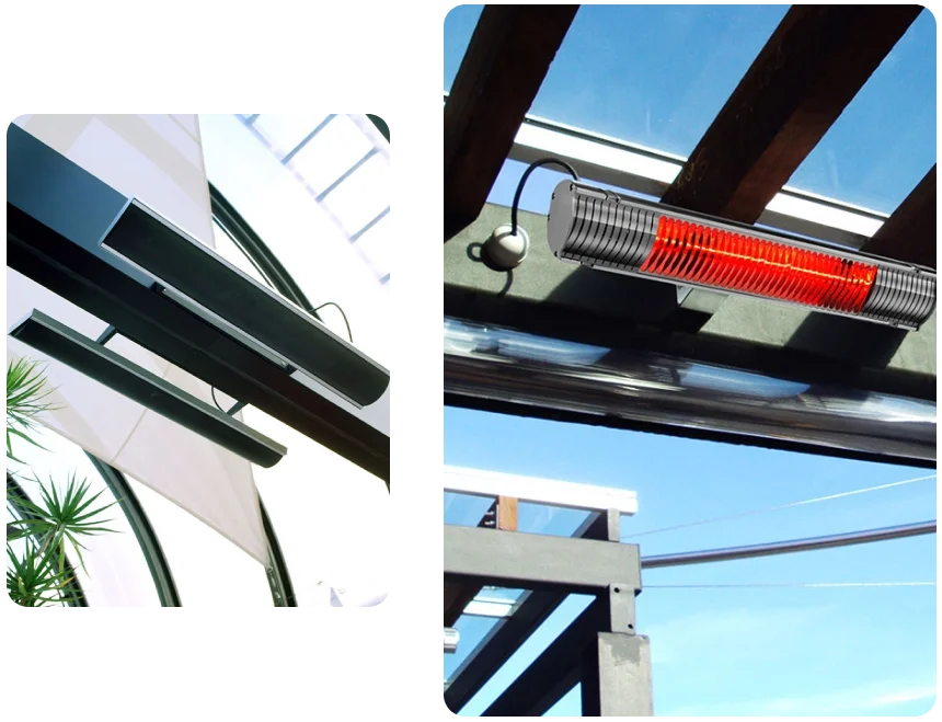 Non-glowing, or a brightness with a pleasing warmer orange tone, aesthetically refined radiant heaters provide soft, low-intensity warmth with a slimline profile.